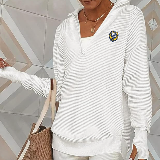 Embroidered Quarter Zip V-Neck Collar Sweater