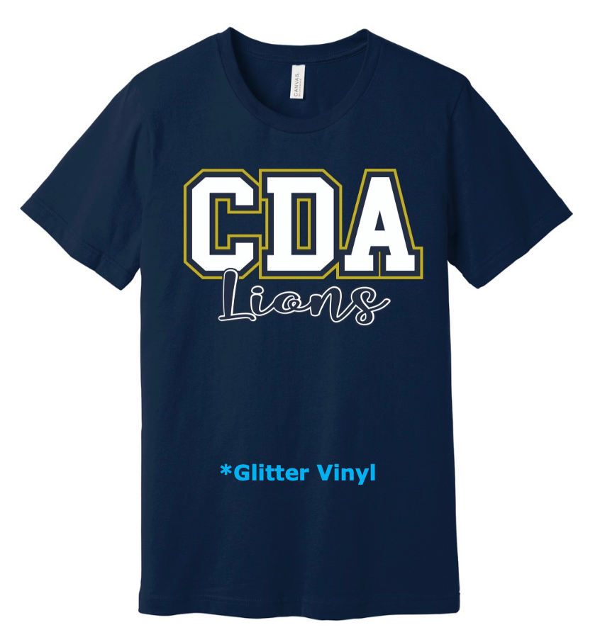 - “CDA“: Gold glitter inside lettering; white glitter outline