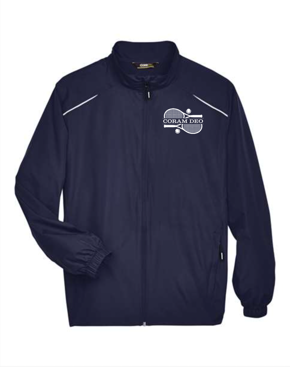 Core365 Motivate Jacket - unlined, water resistant, under arm vents, adjustable shock cord at hem, concealed zipper pockets, reflective piping, audio port access